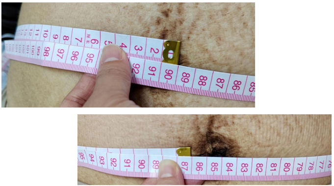 核心肌群訓(xùn)練前腹圍84.8cm,通過(guò)1次核心肌群訓(xùn)練后,腹圍減少為81.5cm。