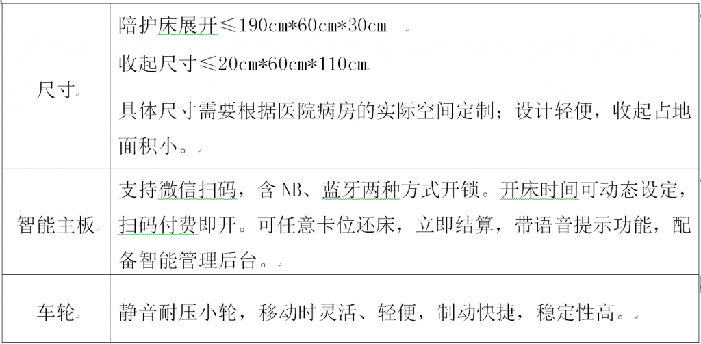 ? ? ? ? 7.陪護床需求數(shù)量,根據(jù)各病區(qū)需求數(shù)量配置。