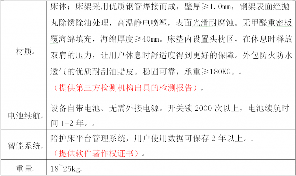 ? ? ? ? 1.中標人需按需求提供陪護床,白天放在收納架,晚上可以自助開鎖使用。